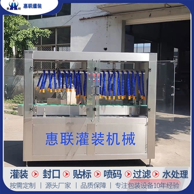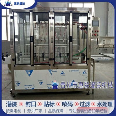 青州市惠聯(lián)灌裝機(jī)械有限公司是一家集生產(chǎn)研發(fā)、銷售、服務(wù)于一體的液體灌裝成套設(shè)備生產(chǎn)企業(yè),可根據(jù)廠家要求設(shè)計(jì)合理液體灌裝生產(chǎn)線,為用戶提供技術(shù)咨詢、設(shè)計(jì)工藝、場(chǎng)區(qū)平面布置、工藝改造、設(shè)備安裝調(diào)試等完善服務(wù)。 公司生產(chǎn)制造各種類型液體灌裝機(jī)、過(guò)濾機(jī),水處理設(shè)備及液體灌裝成套設(shè)備。主要產(chǎn)品有:白酒、葡萄酒、黃酒等酒水灌裝機(jī)、食用油、機(jī)油、潤(rùn)滑油等油類灌裝機(jī)、醬油醋、老抽、生抽等調(diào)味品灌裝機(jī)、防凍液、玻璃水灌裝機(jī)、酒精、84消毒液灌裝機(jī)、車用尿素灌裝機(jī)、口服液灌裝機(jī)、洗滌劑灌裝機(jī)等多種液體、膏體灌裝設(shè)備,全自動(dòng)/半自動(dòng)灌裝機(jī)型號(hào)多,規(guī)格全,洗瓶機(jī)、瓶子封口機(jī)、打塞機(jī)、熱縮機(jī)、瓶子烘干機(jī)、貼標(biāo)機(jī)、噴碼機(jī)、輸送線、裝箱機(jī)、水處理設(shè)備等全套生產(chǎn)線相關(guān)配套設(shè)備齊全,自產(chǎn)自銷,一站式購(gòu)齊,售后無(wú)憂。